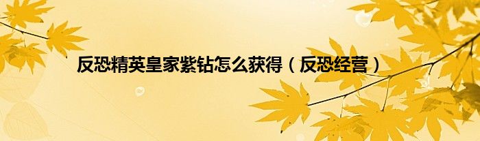 以上就是【反恐精英皇家紫钻怎么获得,反恐经营】相关内容。