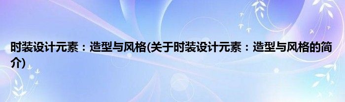 本文关于时装设计元素:造型与风格的简介就讲解完毕,希望对大家有所帮助。