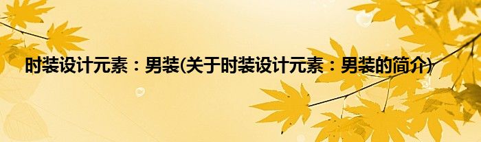 本文关于时装设计元素:男装的简介就讲解完毕,希望对大家有所帮助。