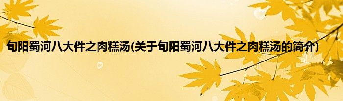 本文关于旬阳蜀河八大件之肉糕汤的简介就讲解完毕,希望对大家有所帮助。
