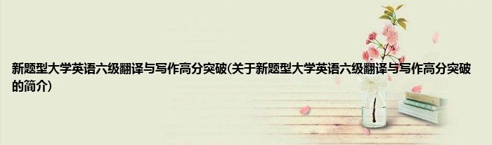 本文关于新题型大学英语六级翻译与写作高分突破的简介就讲解完毕,希望对大家有所帮助。