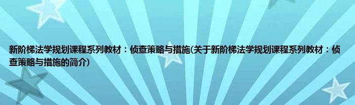 本文关于新阶梯法学规划课程系列教材:侦查策略与措施的简介就讲解完毕,希望对大家有所帮助。