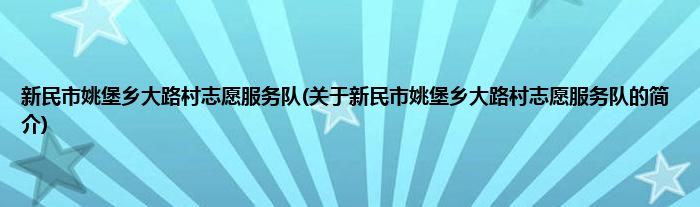 本文关于新民市姚堡乡大路村志愿服务队的简介就讲解完毕,希望对大家有所帮助。
