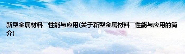本文关于新型金属材料――性能与应用的简介就讲解完毕,希望对大家有所帮助。