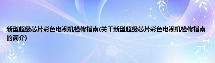 本文关于新型超级芯片彩色电视机检修指南的简介就讲解完毕,希望对大家有所帮助。