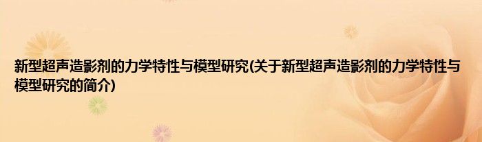 大家好,新型超声造影剂的力学特性与模型研究,关于新型超声造影剂的力学特性与模型研究的简介很多人还不知道,现在让我们一起来看看吧!