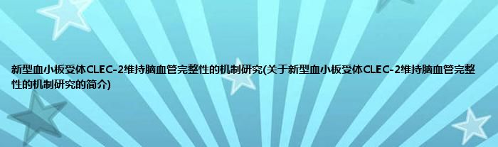 本文关于新型血小板受体CLEC-2维持脑血管完整性的机制研究的简介就讲解完毕,希望对大家有所帮助。
