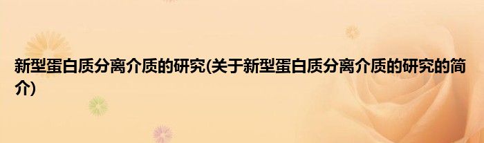 本文关于新型蛋白质分离介质的研究的简介就讲解完毕,希望对大家有所帮助。