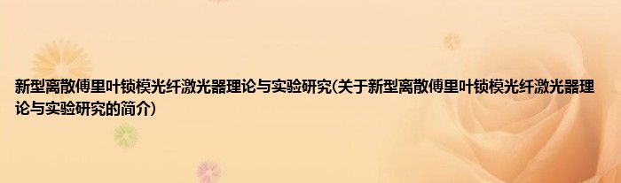 本文关于新型离散傅里叶锁模光纤激光器理论与实验研究的简介就讲解完毕,希望对大家有所帮助。