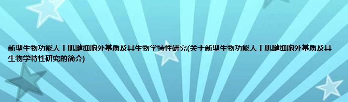 本文关于新型生物功能人工肌腱细胞外基质及其生物学特性研究的简介就讲解完毕,希望对大家有所帮助。