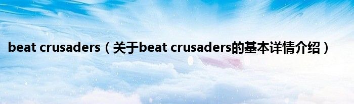 大家好我是小蝌蚪,beat crusaders,关于beat crusaders的基本详情介绍很多人还不知道,那么现在让我们一起来看看吧!