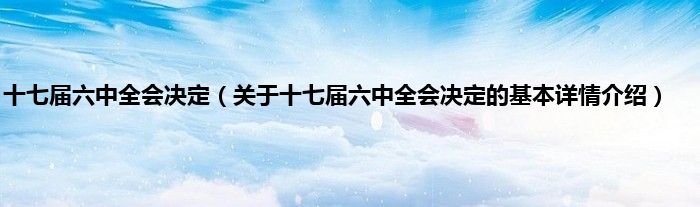 本文关于十七届六中全会决定的基本详情介绍就讲解完毕,希望对大家有所帮助。