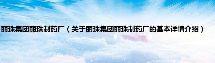 丽珠集团丽珠制药厂(关于丽珠集团丽珠制药厂的基本详情介绍)