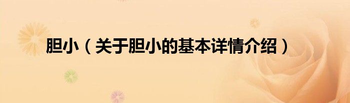本文关于胆小的基本详情介绍就讲解完毕,希望对大家有所帮助。