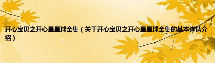 本文关于开心宝贝之开心星星球全集的基本详情介绍就讲解完毕,希望对大家有所帮助。