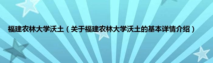 本文关于福建农林大学沃土的基本详情介绍就讲解完毕,希望对大家有所帮助。