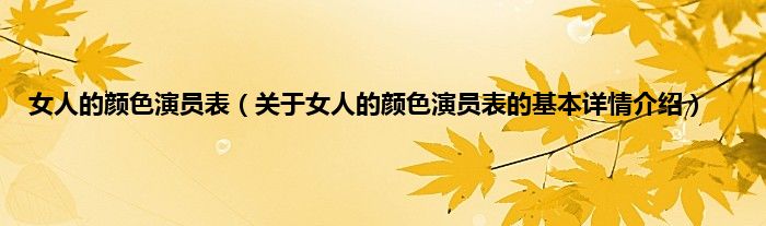 本文关于女人的颜色演员表的基本详情介绍就讲解完毕,希望对大家有所帮助。
