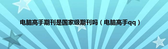 以上就是【电脑高手期刊是国家级期刊吗,电脑高手qq】相关内容。