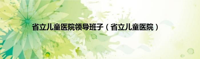 以上就是【省立儿童医院领导班子,省立儿童医院】相关内容。