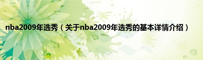 本文关于nba2009年选秀的基本详情介绍就讲解完毕,希望对大家有所帮助。