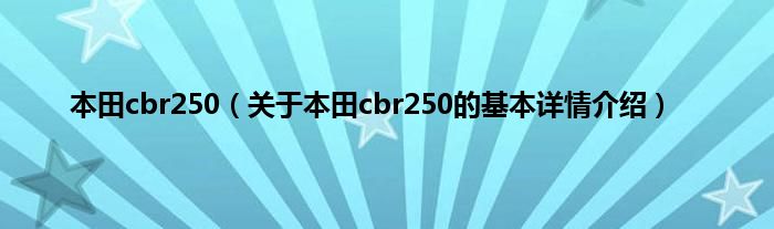 本文关于本田cbr250的基本详情介绍就讲解完毕,希望对大家有所帮助。