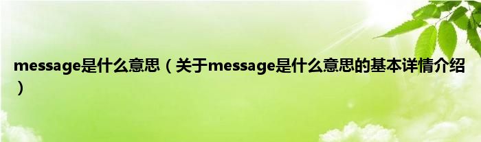 本文关于message是什么意思的基本详情介绍就讲解完毕,希望对大家有所帮助。