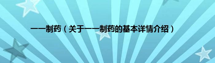 本文关于一一制药的基本详情介绍就讲解完毕,希望对大家有所帮助。