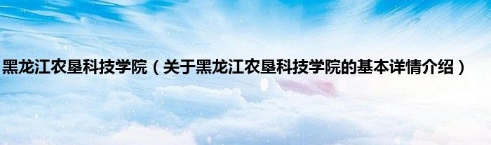 本文关于黑龙江农垦科技学院的基本详情介绍就讲解完毕,希望对大家有所帮助。