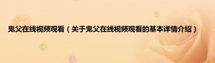 本文关于鬼父在线视频观看的基本详情介绍就讲解完毕,希望对大家有所帮助。