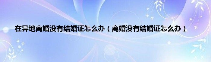 大家好,小问来为大家解答以上问题。在异地离婚没有结婚证怎么办,离婚没有结婚证怎么办这个很多人还不知道,现在让我们一起来看看吧!