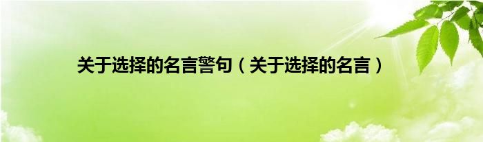 大家好,小问来为大家解答以上问题。关于选择的名言警句,关于选择的名言这个很多人还不知道,现在让我们一起来看看吧!