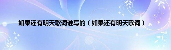 以上就是【如果还有明天歌词谁写的,如果还有明天歌词】相关内容。