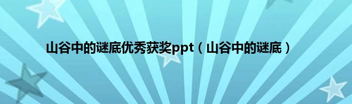 以上就是【山谷中的谜底优秀获奖ppt,山谷中的谜底】相关内容。
