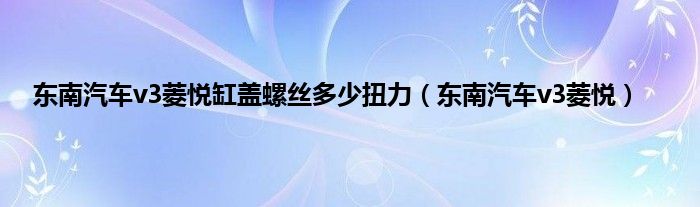 以上就是【东南汽车v3菱悦缸盖螺丝多少扭力,东南汽车v3菱悦】相关内容。