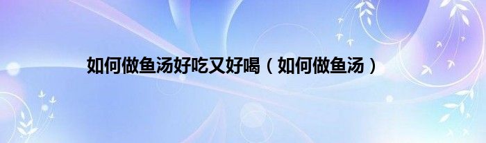 以上就是【如何做鱼汤好吃又好喝,如何做鱼汤】相关内容。