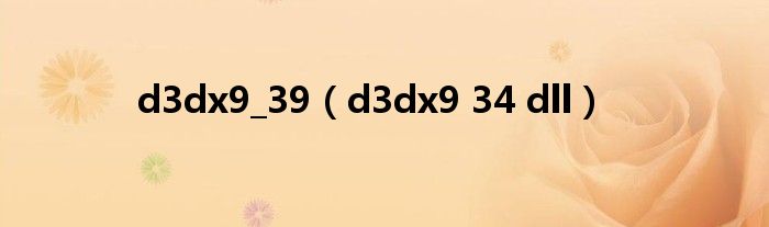 大家好,小问来为大家解答以上问题。d3dx9_39,d3dx9 34 dll这个很多人还不知道,现在让我们一起来看看吧!