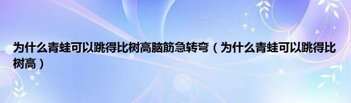 以上就是【为什么青蛙可以跳得比树高脑筋急转弯,为什么青蛙可以跳得比树高】相关内容。