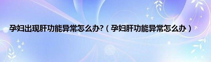 大家好,孕妇出现肝功能异常怎么办?,孕妇肝功能异常怎么办很多人还不知道,现在让我们一起来看看吧!