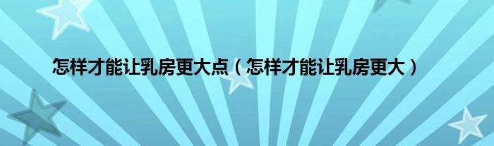 本文,怎样才能让乳房更大点,怎样才能让乳房更大到此就分享完毕,希望对大家有所帮助。