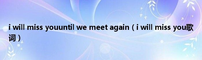 以上就是【i will miss youuntil we meet again,i will miss you歌词】相关内容。