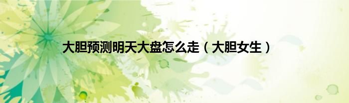 大家好,小问来为大家解答以上问题。大胆预测明天大盘怎么走,大胆女生这个很多人还不知道,现在让我们一起来看看吧!