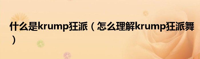本文,什么是krump狂派,怎么理解krump狂派舞到此就分享完毕,希望对大家有所帮助。