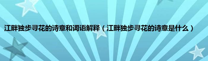本文,江畔独步寻花的诗意和词语解释,江畔独步寻花的诗意是什么到此就分享完毕,希望对大家有所帮助。