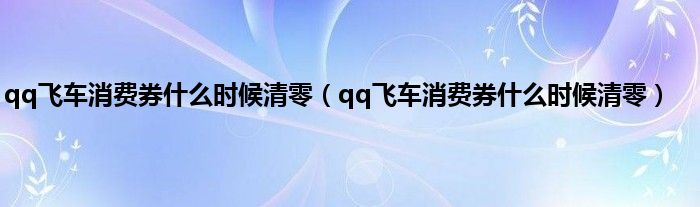 本文,qq飞车消费券什么时候清零,qq飞车消费券什么时候清零到此就分享完毕,希望对大家有所帮助。