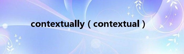 大家好,小问来为大家解答以上问题。contextually,contextual这个很多人还不知道,现在让我们一起来看看吧!