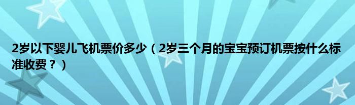 大家好,2岁以下婴儿飞机票价多少,2岁三个月的宝宝预订机票按什么标准收费?很多人还不知道,现在让我们一起来看看吧!